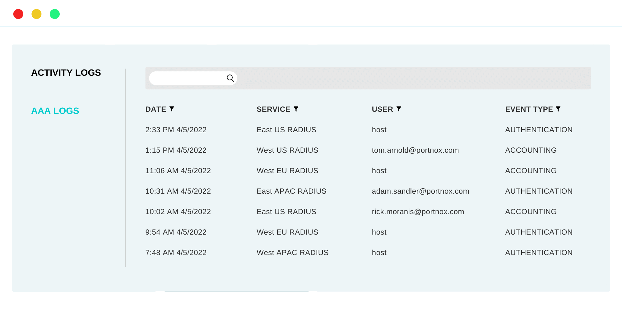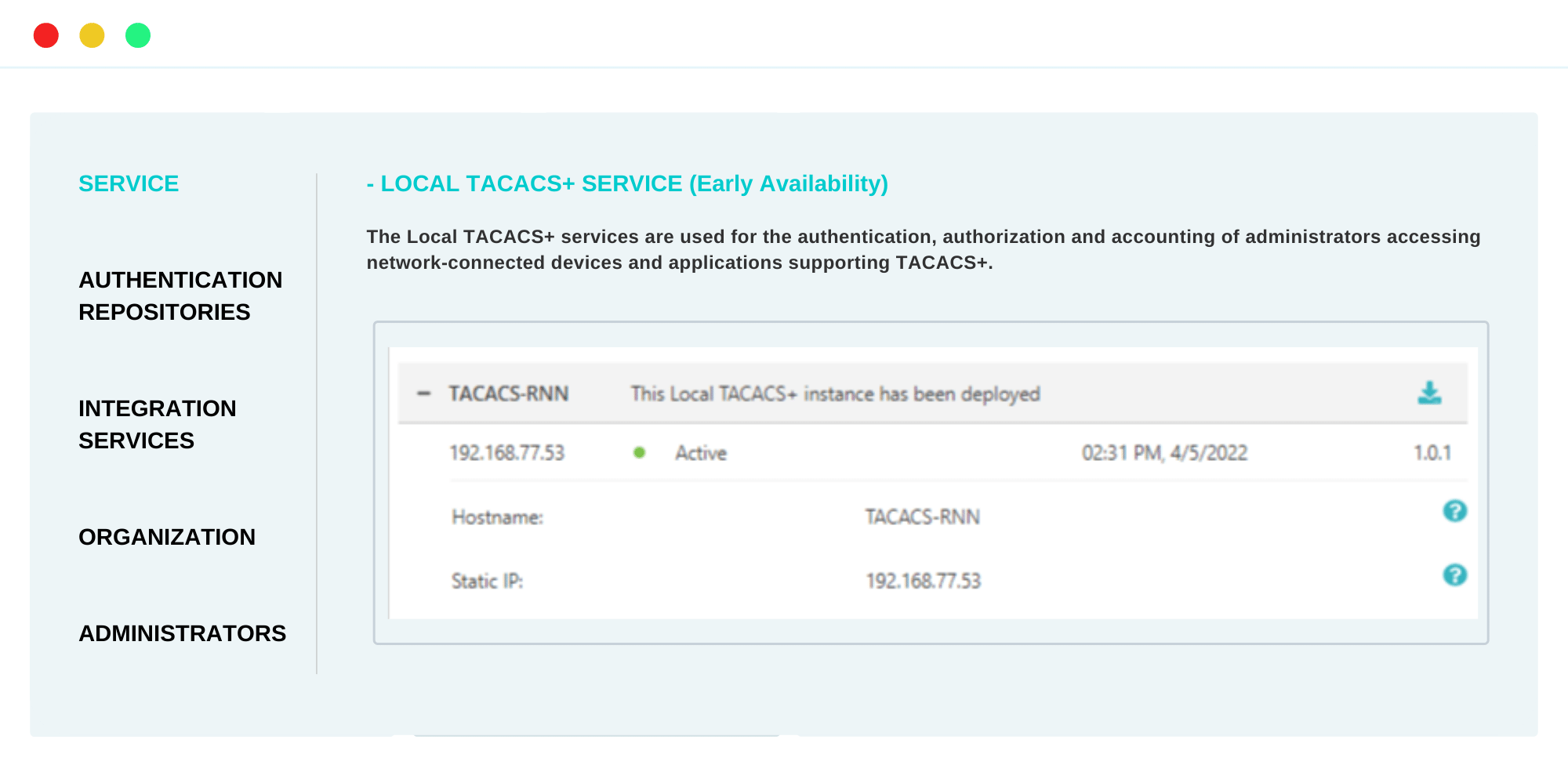 TACACS+ brings AAA (Accounting, Authentication, and Authorization) to the cloud. Available accounting records include user identities, start and stop times, and executed commands.
