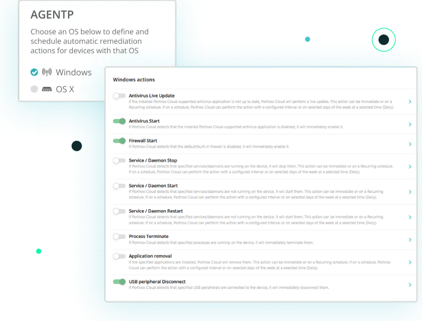 Quarantine vulnerable, non-compliant devices and return them to a healthy, compliant state automatically by setting unique endpoint remediation policies in accordance with your compliance requirements.